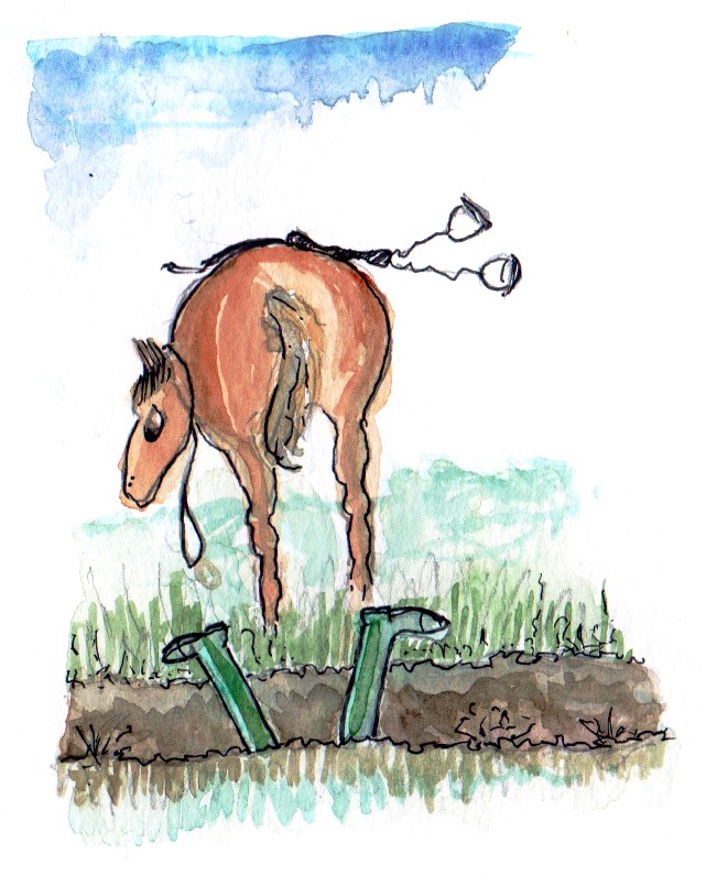 I spent the better part of the morning of Tuesday 8th September languishing in a deep, sandy ditch. Ten days on, I’m just beginning to see the funny side: ‘Last Tuesday firemen were urgently called into the middle of absolutely nowhere to save an ‘anglaise’ who had forgotten to apply superglue to her saddle that morning. Her young horse, having been scared witless by a lifting pheasant, took off home at a flat-out gallop, but not before finding the time to rear up, swerve and plunge into a nearby ditch where he unscrupulously deposited his rider.’