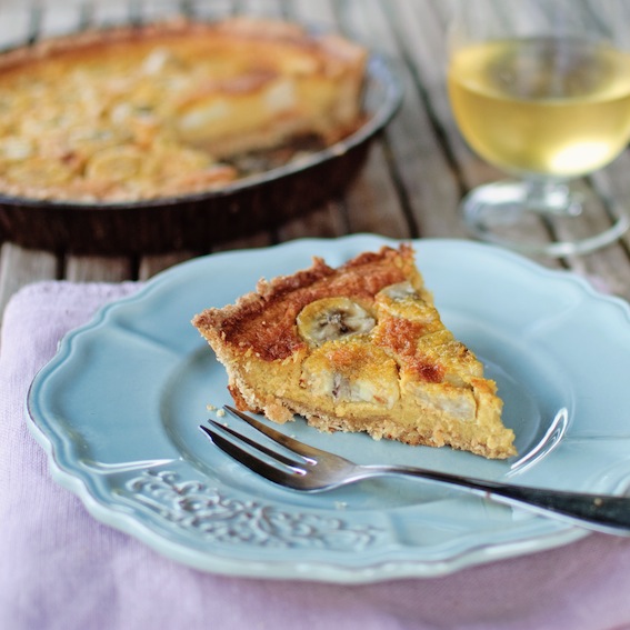 Preheat the oven to 180°C. Roll out the pastry on a clean, lightly floured surface and fill the tart tin. Cook the pastry for 15 minutes. Arrange the bananas evenly over the surface of the pre-cooked tart. Add the eggs, coconut sugar, desiccated coconut, vanilla essence, cream, rum, cinnamon and nutmeg to a bowl and combine to create a homogenous mixture. Pour over the bananas and cook for 30 minutes, or until the filling is no longer wobbly. Delicious served either lukewarm or chilled.