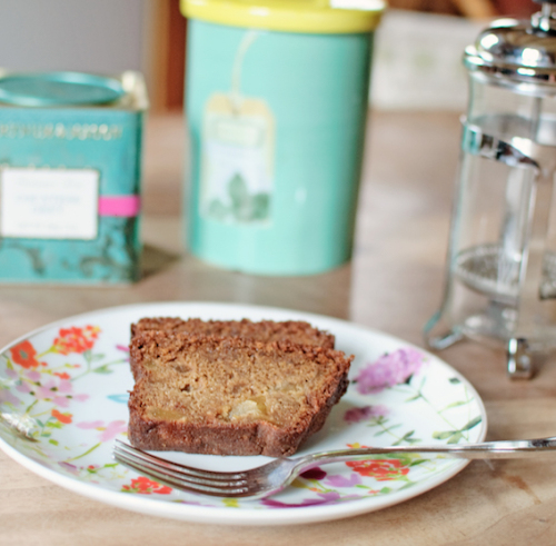 Preheat the oven to 180°C and prepare a medium-sized loaf tin. Beat the eggs, olive oil and cane sugar together until thick and smooth. Gently fold in the flour, baking powder and bicarbonate soda. Finally stir in the diced apples vanilla essence and transfer the mixture to the greased tin. Bake for 45 minutes or until a skewer poked into the centre comes out clean. Leave to cool before serving.