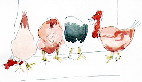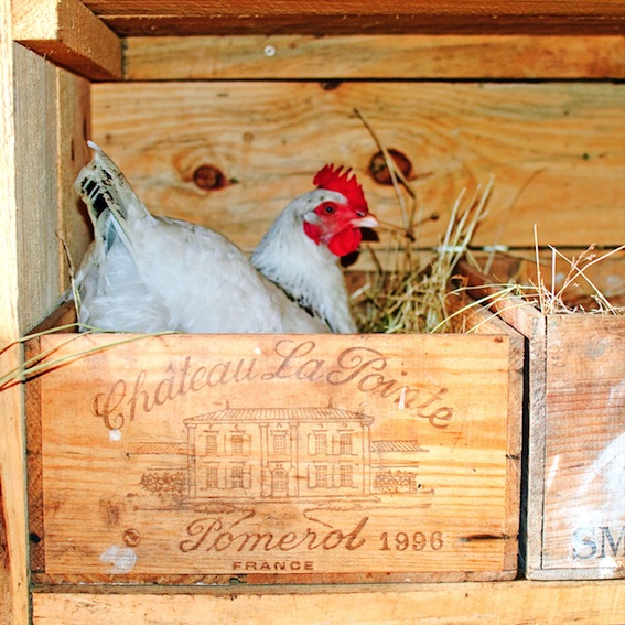 Our hens lay their eggs in hay-filled wooden boxes on shelves in my husband’suntidy toolshedworkshop. Naturally, they don’t lay in any old boxes; these are exceedingly posh vintage wine boxes. Three of our more intrepid hens are into extreme sports and like to lay altitude eggs on the higher shelves, while the more cowardly lay at ground level. Yesterday afternoon we heard an unusual and hysterically distressed screeching noise coming from the workshop, very different from the customary ‘get out of my face bitch or I’ll do you over’ squawking. Upon investigation, it appeared that two of the intrepids had been trying to lay in the same high altitude box at the same time and had ended up in a heap on the ground, imprisioned in the box that had landed on top of them. Luckily both they and their eggs were intact or I suspect we’d have been eating coq au vin omelette for dinner. 😉