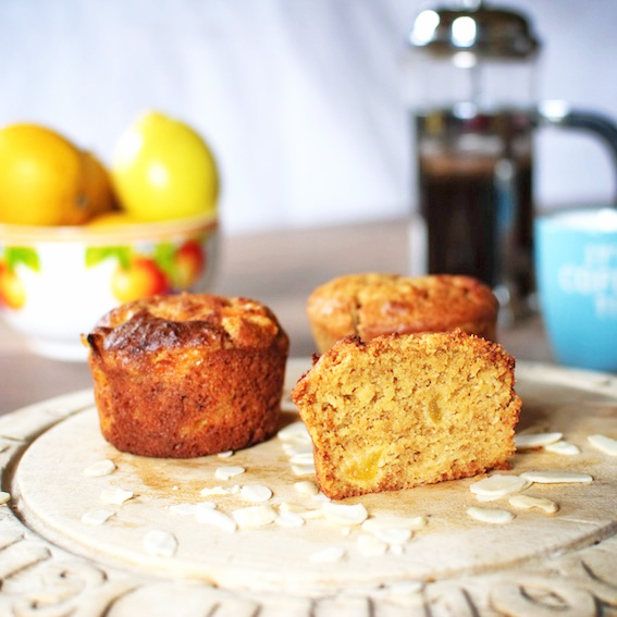 Preheat the oven to 180°C. Cream the butter and coconut oil for about four minutes. Add a spoonful of flour, beat again, then add the eggs, beating further until the mixture is light and fluffy. Add a little more flour to prevent curdling. Gently fold in the remaining flour, ground almonds, baking powder, cane sugar, and milk. Lastly, fold the poached apricots and grated ginger into the mix. Spoon into muffin trays and bake for 25 minutes.