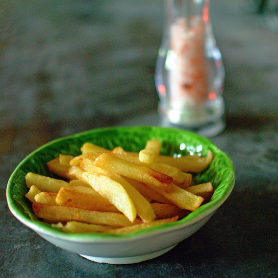 As the idea of me in charge of a vat of boiling duck fat is too harrowing to contemplate, my husband makes the chips in our house. I’m happy to report that my competence does however run to eating them. My husband is away for a few days this week and, last night, Hugo pussyfooted (sorry Hugo – I know that’s not very flattering) upstairs to Léo’s room to dispense a big slobbery goodnight kiss. He has never done this before and probably won’t do it again as, having woken Léo up, he got very short shrift (there was a burst of shouting and Hugo reappeared downstairs looking decidedly dejected, his tail between his legs). I realised that he obviously considers himself to be a stand-in papa, so now I’m wondering if he could bring the wood in for the hot-water boiler, take out the dustbins and then make me a big bowl of chips…