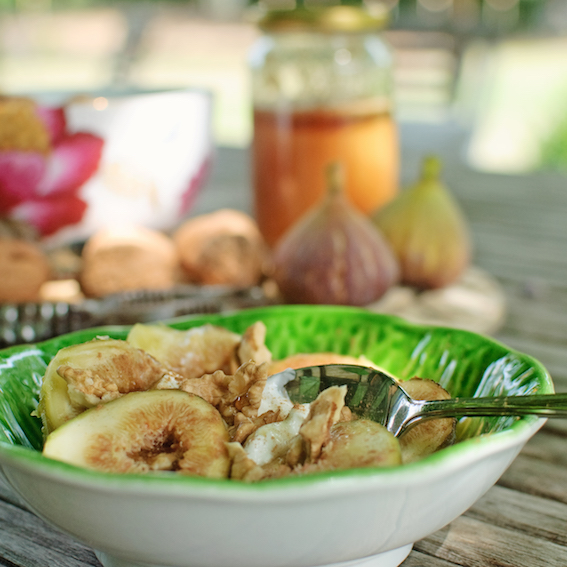 Fresh figs with ginger mascarpone and honey and Bijou on the drums