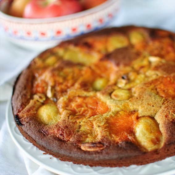 Caramelised peach and buckwheat pudding cake (gf) and tired chicken legs