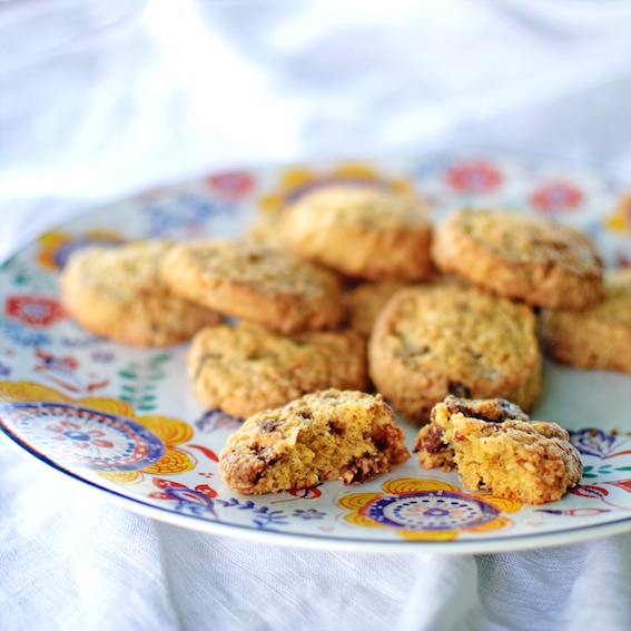 Léo is injured too and has his arm in a sling (something to do with walls, daredevilry and being a ten-year-old boy). Since his skateboarding tricks are somewhat impeded, he decided we should make chocolate chip cookies; I decided that they should be reasonably healthy and this is what we came up with.