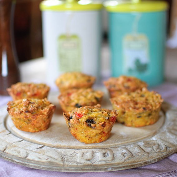 Preheat the oven to 180°C. Combine the flour, seasoning, spices and bicarbonate of soda in a large bowl. In a second bowl, combine the chickpeas, eggs and oil, mixing well. Add the dry ingredients to the wet ingredients, folding together well. Lastly incorporate the grated cheese, onion and red pepper. Transfer the mixture to muffin tins or moulds (I use silicon moulds) and bake for 20-25 minutes or until a fork comes out clean. Delicious served hot or cold.