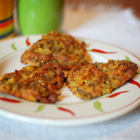 These delicious patties contain protein in the form of lentils, but obviously no bones. My nerves are in shreds where bones are concerned for the time-being.