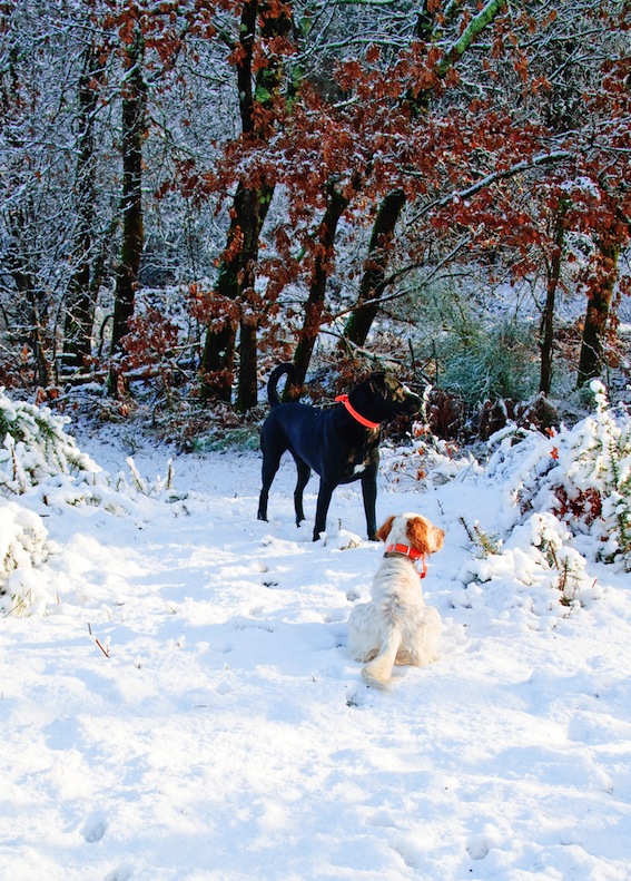 Until today, I neither shared nor understood Java’s enthusiasm for the cold white stuff that suddenly appeared the other morning. Mind you, she’s so foolish that I don’t understand much about her at all. I refused to go out all day on Monday in the hope that it would disappear. It didn’t, and there was even more of it this morning so, after much coaxing, I agreed to accompany Bossy and Java on a walk. I soon found out that if I ran very fast and then suddenly stopped, Java (who copies everything I do) was taken by surprise, skidded, lost her balance and fell over (what’s not to like?). How anyone with four legs can actually fall over is beyond me – it just goes to show how silly she is. Bossy lost her balance a few times too *canine snigger*, but in her case it’s more understandable as she only has two legs and I suppose she’s busy trying to control her mouth, always going at full throttle. These little bonuses mean that I’ve decided that the white stuff is not so bad after all. I may even look into skiing lessons…