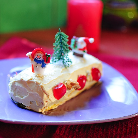This ‘bûche de Noel’, which is similar to a roulade, is the traditional French Christmas dessert. It should be kept under lock and key IN THE HOUSE until you’re ready to eat it!